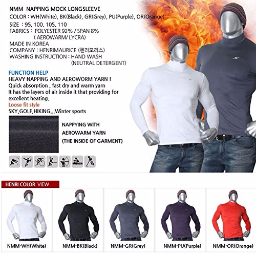 Who else still shiver with cold in winter season? Here is Perfect solution!! - Mock Turtleneck Men Thermal Base Layer Compression Napping Shirts NMM ? Thermal Effect / Temperature Preserved / Moisture Management with Nano Napping and AeroWarm Fabric ? Air bound in the Aerowarm fabric by Double Layer Fabric Improves Thermal Effect For Extreme Cold Weather Condition ? It makes a nice and pleasant condition for exercises due to its super light spandex which is soft, wearable, flexible ? Spandex with high-elasticity allows the sweat to be quickly absorbed and dried ? Cotna Fabric makes soft touch feeling, Fast absorbed / dried and easy care function fabric, less fluff / lint than cotton