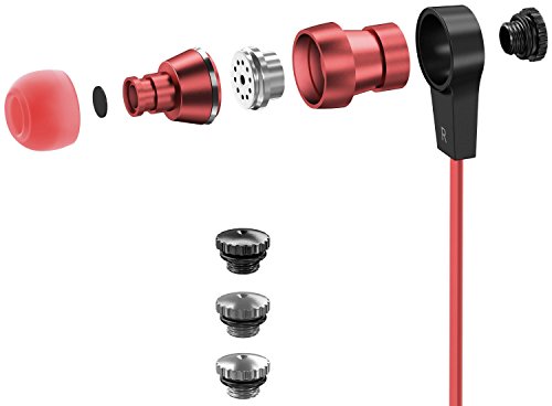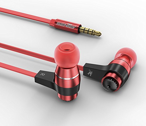 Sentey Black/Red Earbuds In ear Headphones Earphones headset Metal Audiophile for Music Running Inline Control Microphone Kids Men Girls Travel Carrying Case Included Tangle Free Cable Oryon LS-4216