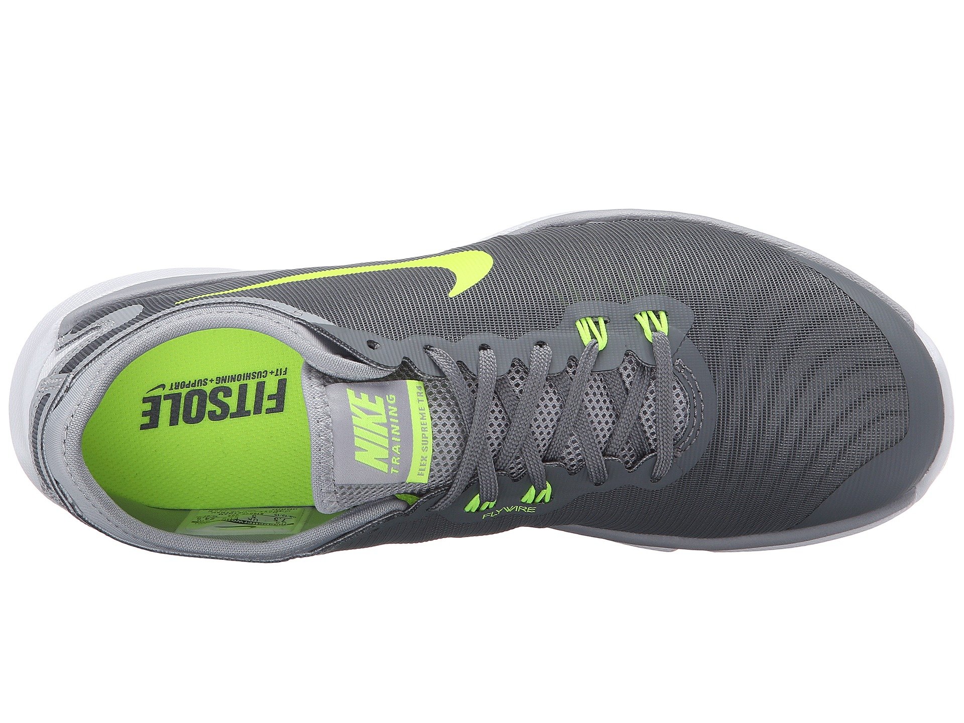 | Product Information SKU: #8636727Turn up the heat on your next workout in the Nike? Flex Supreme TR4 training sneaker!Breathable mesh and synthetic upper materials. Lace-up closure. Thin comfort tongue.Slightly padded collar. Breathable fabric lining offers a great in-shoe feel. Removable molded insole. Soft Phylon core midsole with articulated Phylite carrier. Rubber outsole. Imported. Product measurements were taken using size 7, width B - Medium. Please note that measurements may vary by size.Weight of footwear is based on a single item, not a pair.Measurements: Weight: 6 oz |