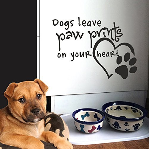 Wall Decal Decor Dog Quote Paw Print Decal- Dogs Leave Paw Prints On Your Heart Vinyl Stickers Pet Lover Gift Dog Wall Art Sticker(dark gray, 16"h x22"w)
