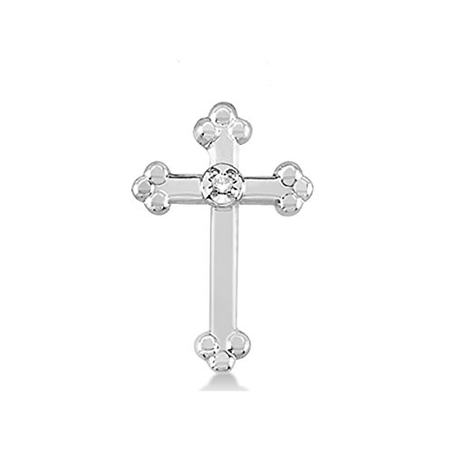 -. Title : Diamond Cross Lapel Brooch Pin in Plain Metal 14k White Gold (0.01ct)