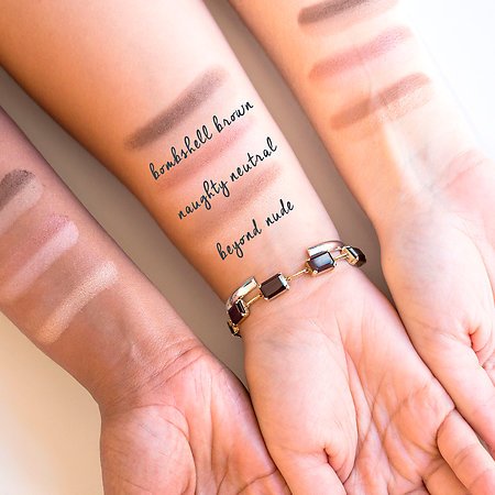 This palette contains : 3 x 0.12 oz/ 3.54 mL They're real! eyeshadow duo in Beyond Nude, Naughty Neutral, Bombshell Brown. Custom ShadowBlender beyond easy eyeshadow applicator