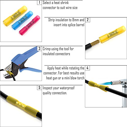 - CERTIFIED HEAT SHRINK TUBING FOR INDUSTRIAL-STRENGHT RESULTS - Our wire crimping tools set features translucence heat shrink tubing which provides an air-tight and waterproof seal around each wire! Plus, our electrical connectors kit meets ROHS, ISO 9001:2008, SGS & CE quality standards!