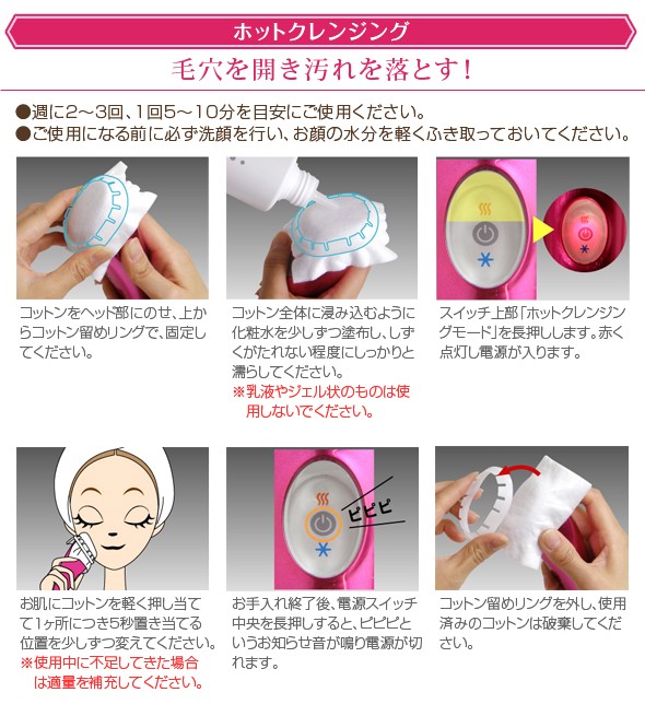 セット内容本体、充電器、コットン10枚、コットン留めリング、置台、携帯用キャップ