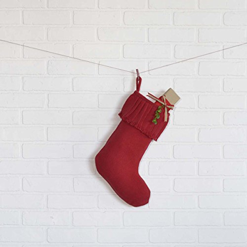 VHC Brands Festive Burlap Ruffled Stocking, 15" x 11", Red