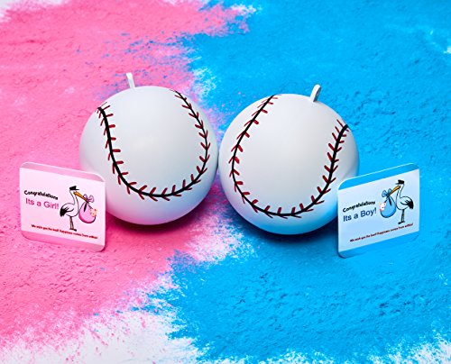 2 Blue (Boy) Gender Reveal Baseballs includes Blue Powder, Reveal Party supplies - Team Blue (Boy) - FamilyFun Authentic Products