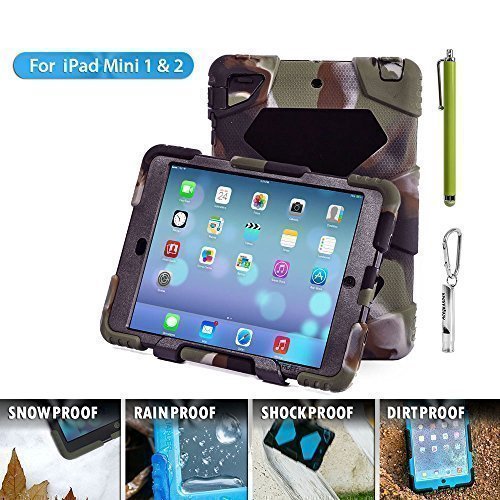 -. Feature : Dual layer exterior perfectly protects stand shockProof waterproof cover Case for Apple iPad Mini / iPad Mini Retina / iPad Mini 3 (with Retina Display) / This case is made of eco-friendly silicone , durable, safety and non-toxicity, lasting color and not easily deformed, Against unwanted bumps, accidental drops, scratches, bruises or stains, very safe and protected. / Very vivid color, Unique KickStand Design, Precisely cut openings to allow full access to all the functions, so the sound and Camera is not affected whatsoever. / Pretty fashionable looking design for School and Classroom Tasks/ Heavy Duty and Kids Friendly. / Distinctive Camouflage series suitable for outdoor hunting, fishing, hiking, camping to protect your iPad mini 3/2/1