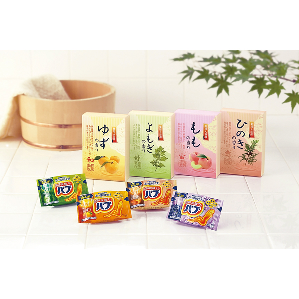 ●内容品:バブ(ゆず・森・ラベンダー)×各2、薬用入浴剤(ゆず・よもぎ・もも)(各25g×2袋)×各1