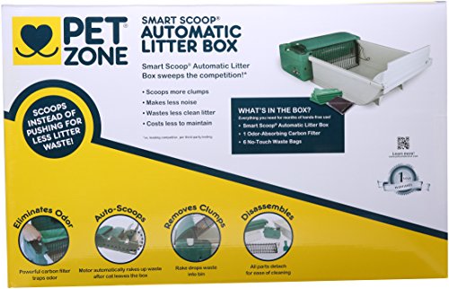 Self-cleaning automatic litter box with smart sensor for triggered activation of cleaning cycle. Motor and scooping rake automatically runs 15 minutes after cat leaves the box with a powerful, yet quiet motor unit. Works with your favorite clumping litter; no need to buy special or costly crystal litter cartridge replacements.