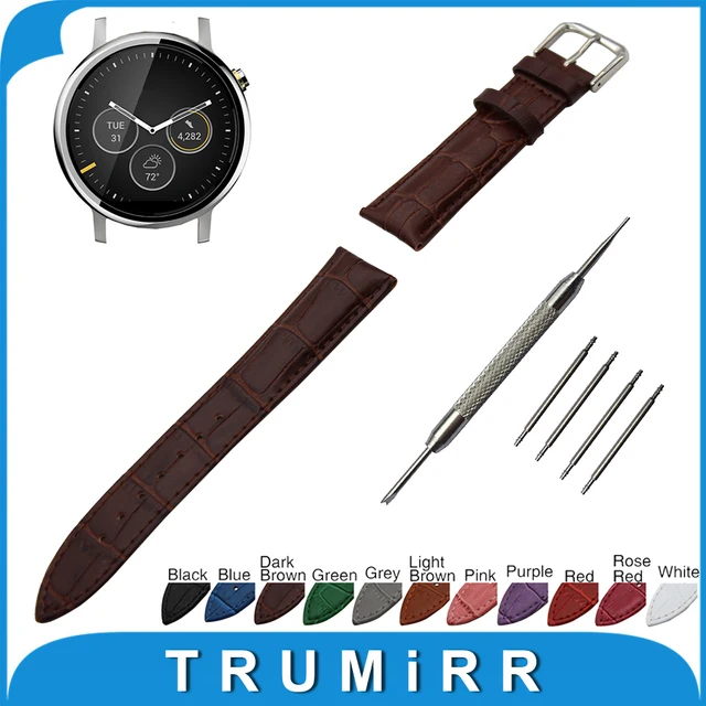 | [해외]22 미리메터 악어 정품 가죽 시계 밴드 moto 360 2 46 미리메터 2015 스테인레스 스틸 핀 버클 스트랩 손목 벨트 팔찌 + 봄 바 |