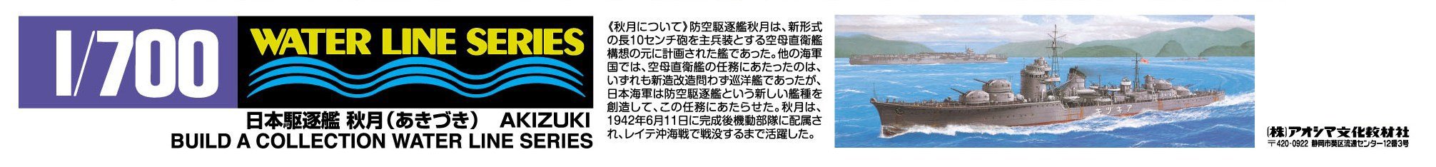 WATERLINE No. 426. JAPANESE NAVY DESTROYER AKIZUKI Scale:1/700
