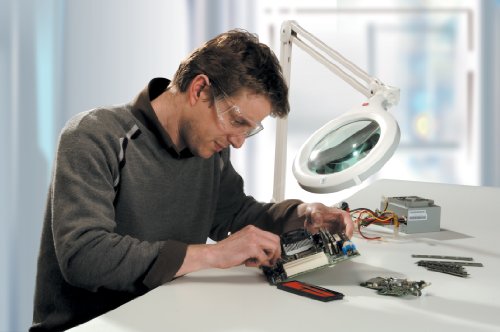Studio : DAYLIGHT Publisher : DAYLIGHT Binding : Misc. Product Description Designed especially for the serious needle worker; crafter; hobbyist and artist the Ultra-slim magnifying lamp combines the largest precision glass lens (7in/17.5cm) with the strongest Daylight (28w-150w equivalent) bulb. You can see more of your work in precise and clear detail as well as work longer in comfort. This lamp comes with a table clamp that will fit onto surfaces up to 1-1/2in thick. Additional features include white housing; flicker-free electronic ballast and head-joint that smoothly directs light exactly where it is needed. UL Listed E319880. 0