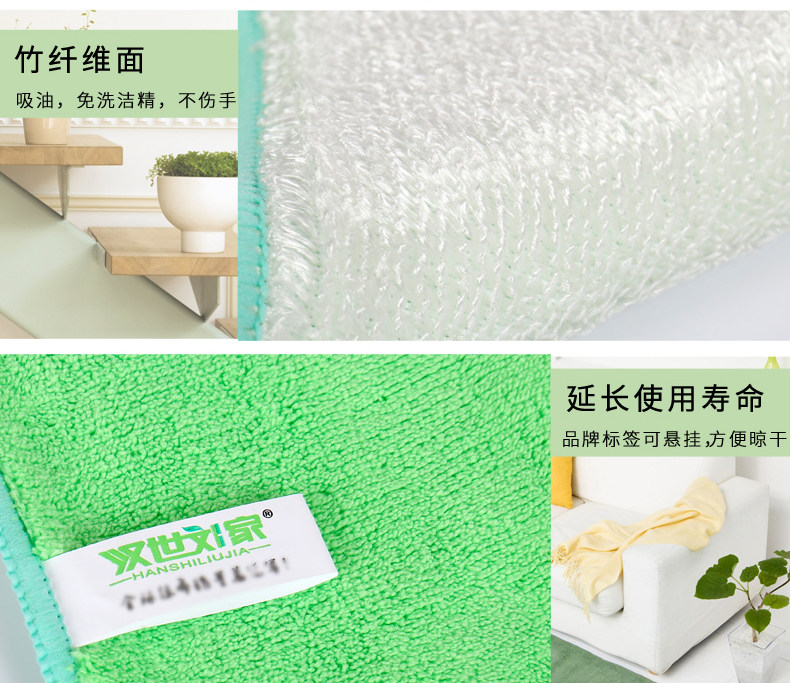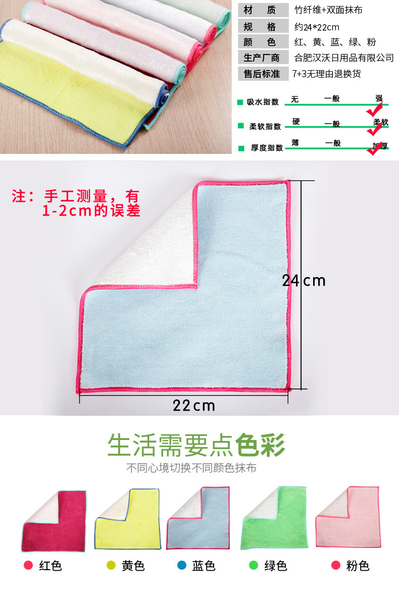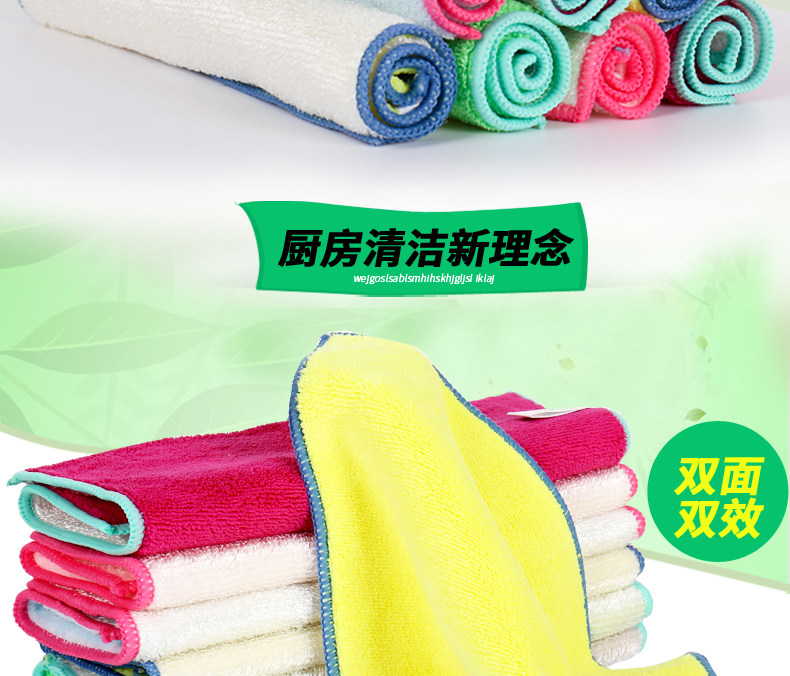 微细纤维洗碗布双面吸水抹布 竹纤维加厚不沾油洗碗巾10条装