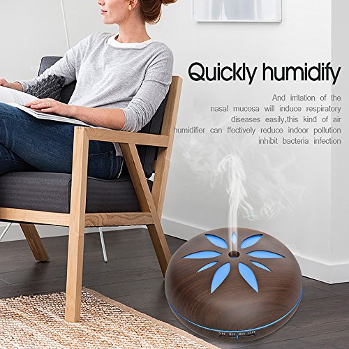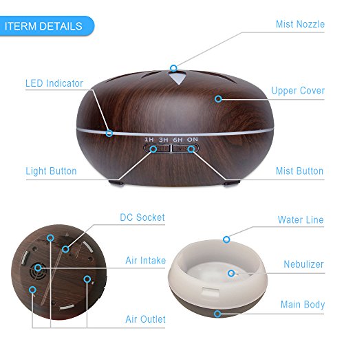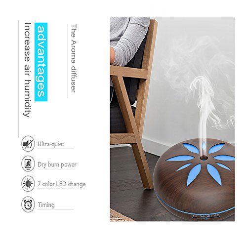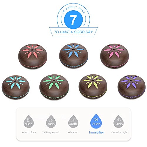 550ML Wood Grain Aromatherapy Essential Oil Diffuser by SMAY Adjustable Mist Aroma Humidifier with 4 Timer Setting Waterless Auto Shut-off and 7 Color LED Lights Changing for Office Home Baby Yoga Spa