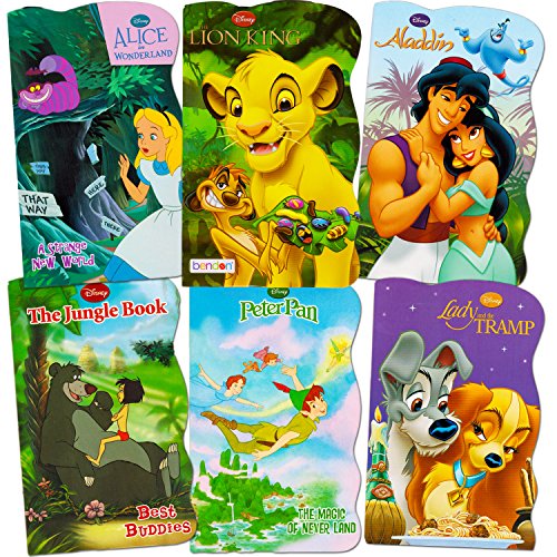 [Product Information]- Disney Baby Toddler Super Set of 6 Board Books. Children and toddlers engage with Disney characters from classics including Aladdin, Peter Pan, Lion King, the Jungle Book, Lady and the Tramp and Alice in Wonderland.