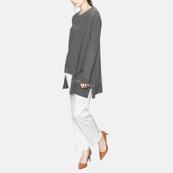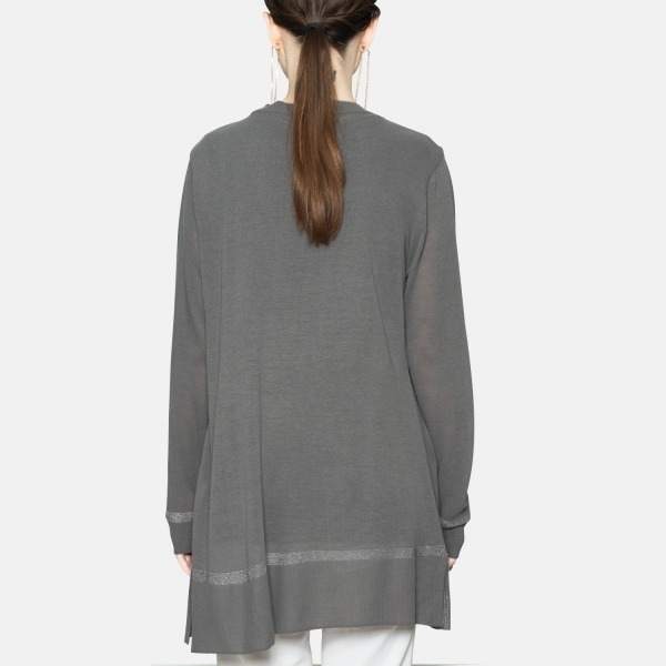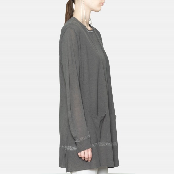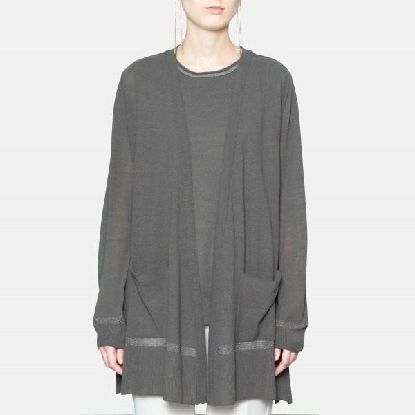 촘촘하고 세밀하게 짜여진 니트 조직이 돋보이는 오픈 가디건입니다. 잔잔한 광택감을 주는 디테일이 포인트가 되며, 힙을 덮는 기장감에 부담없이 걸쳐 연출하기 좋은 아이템입니다.