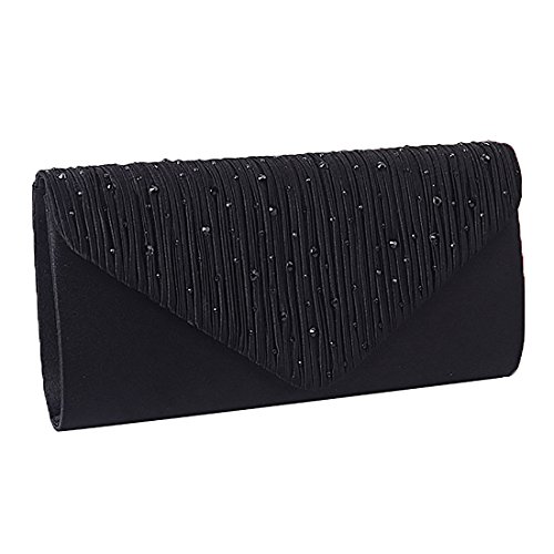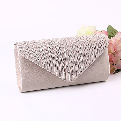 -. Title : Women Pleated Satin Wedding Evening Bridal Clutch Purse With Rhinestones