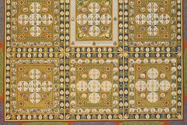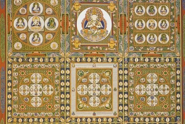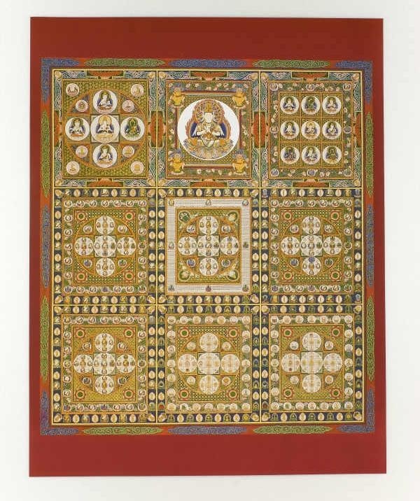 大日如来を教主とする九種の曼荼羅が一つに集められたものです。金剛のように堅固な仏の智慧をあらわしています。