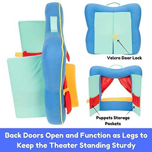 ✔ SUPERIOR QUALITY MANUFACTURER! Quality is our top priority, especially when it comes to children's toys! We make our kid's puppet theater toy from SOFT PLUSH and FOAM, for easy storage and carrying everywhere! Durable, safe and long-lasting, our kids/family puppet theater toy comes in 3 FANTASTIC COLOR COMBINATIONS! Pick among Blue, Pink & Spring Green!