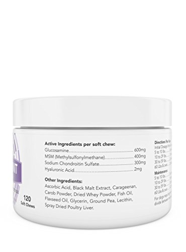 -. Feature : CONTAINS HIGHER AMOUNTS OF ACTIVE INGREDIENTS THAN OTHER FORMULAS: Nootie puts in more Glucosamine -600mg, Chondroitin-300mg, MSM-400mg and Hyaluronic Acid per chew - the ingredients that help your dog's hips and joints the most / IMPROVES MOBILITY & RELIEVES PAIN OR WE'LL RETURN YOUR MONEY: Want your best friend living happily & w/o pain? Don't trust unproven, imitation joint health support or continue w/o it. / [FOR ALL BREEDS & SIZES] GET YOUR DOG OUT OF PAIN, PROTECT FROM FUTURE DAMAGE: Some glucosamine chondroitin for dogs looks like a deal, but comes cheaply made, diluted (not pure like ours), & tastes awful. / THE ONLY SUPPLEMENT YOUR DOG LOVES, PROMOTES HEALTHY JOINTS - LIFETIME WARRANTY: Perfect for hip dysplasia in dogs, arthritis, joint damage & more. A happy, healthy, protected dog AND a warranty / 120 CHEWS - ORDER NOW FOR THESE EXCLUSIVE AMAZON BONUSES -You get our Lifetime Warranty ($42.97 value) included FREE. [Buy 3 Get 1 Free] makes the perfect gift.