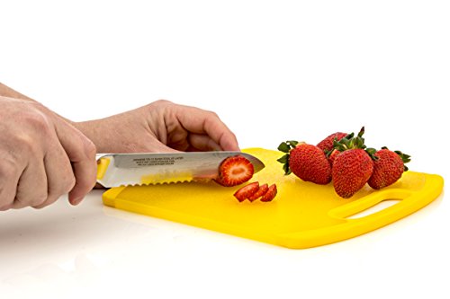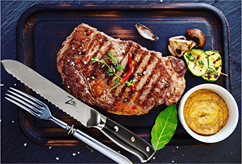 BEST VALUE, PREMIUM PACKAGING, UNRIVALLED PERFORMANCE >>> Don't compare on Price, You get what you Pay for! Razor Sharp Serrated Edge for Maximum Sharpness & Safety. Breads, Soft Fruits, Tomato and more are Precision Sliced. No tearing or squishing, only Ruthless Efficiency, Every Time! Get ready to feel like the Master Chef's do on a Cooking Show