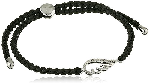 Sterling Silver White Diamond Mantra Collection Wings with Cord Bracelet (1/10cttw, I-J Color, I2-I3 Clarity)