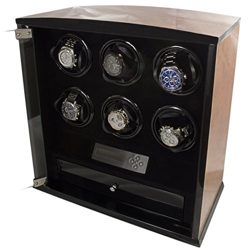Studio : Upscale Time Publisher : Upscale Time Binding : Watch Product Description 2 Yr Limited Warranty against MFG defects Beautiful Gloss Blonde Burl Wood Finish with High Lacquer Quality motors with ultra quiet operation, Japanese motors. Mabuchi brand motor and Trans unit. (Same company that makes window motor units for Toyota and Lexus) Black Velvet Interior Bi-Directional winder Quality made LCD backlight dims after 15 seconds to save energy. Real glass on front. 2 year limited warranty on MFG defects through our company. Comes with instructions on how to program Manufactured for us to our exacting specifications. Comes with Instruction booklet Watches Pictured are Not included Quality lock with 2 keys included Spring loaded watch holders clip in securely to the winder Stylish Arched Top Can hold up to 60mm watch diameter case including crown of watch. Runs on AC only, AC adapter included AC Adapter works with 110v - 240V so unit can be used in Europe with just a simple plug adapter Free shipping within the 48 Contiguous United States International: $125 via FedEx Programs Winder Runs. Setting 1) 650 Turns per day. Setting 2) 900 Turns per day. Setting 3) 1200 Turns per day. Setting 4) 1500 Turns per day. Setting 5) 1800 Turns per day. Each setting offers the ability to choose Unidiretional Left, Unidiretional Right, or Bi-Directional You have the option to choose any program for any slot, or the same setting for all slots at once. Watches that are shown are not included. **You should always check with your watch manufacturer for correct programming for your watch movement. All figures given and aprox. Customer is responsible for damage to watches due to misuse of the winder. Winder does not include watches pictured. Int'l buyers may need a voltage adapter (not included) to make this unit work in their country. Import duties taxes and charges are not included in the item price or shipping charges. Please check with your country's customs office to determine what these additional costs will be prior to buying. 0