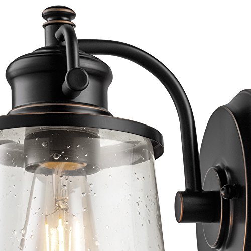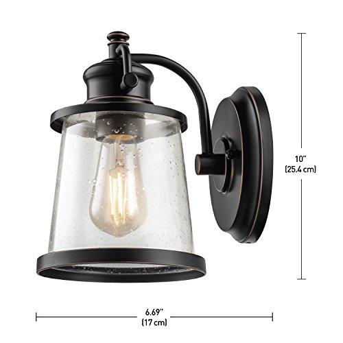 Globe Electric Charlie LED Outdoor Wall Sconce, Oil Rubbed Bronze Finish, Clear Seeded Glass Shade, LED Bulb Included, 44127