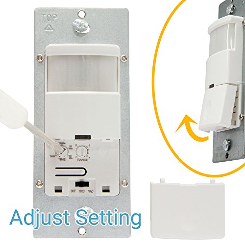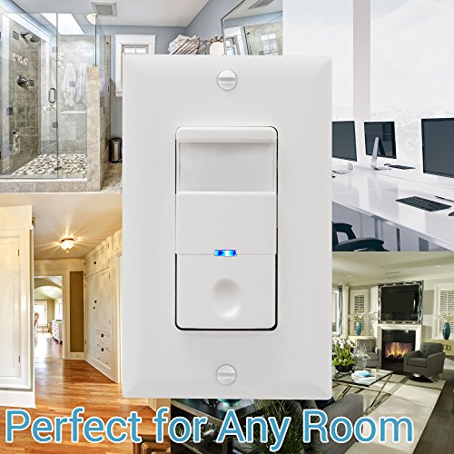 TOPGREENER TDOS5-J Motion Sensor Switch automatically turns ON/OFF the lights and motors according to the motion (occupancy/vacancy) detected in the room.Two modes: In OCC mode lights are automatically turned on when you enter a room and automatically turned off after the room is vacant. This is especially convenient when entering a room with your hands full, such as an entryway, laundry room, garage, etc. The motion detector will deter thieves and allows a surveillance camera to capture clear footage. The motion sensor automatically turns the light on to avoid blind-searching and tripping when entering a dark room. TDOS5-J provides reliable On/Off performance. The sensor can detect fine motions to keep the light on when the room is occupied. When no motion is detected within a period of time the load will turn off automatically. TDOS5-J adopts the embedded circuit with the "photocell" function which gives the motion sensor "intelligence" to sense the light level. Use OCC mode for the kitchen, laundry room, garage, restroom, office, closet, etc. 15 sec to 30 mins adjustable timeout allows users to choose their preferred option. VAC mode is used in rooms that do not need the lights to automatically turn on, such as bedrooms and media rooms. Vacancy mode is another option to choose from, which requires manually turning the light on and automatically turns the light off when the room is vacant.The PIR sensor switch's visually aesthetic design and broad compatibility make it a good choice for you to upgrade your home. This occupancy sensor switch is only for single pole application and needs to be charged in an initial run for at least 3 minutes after installation.While works with NEUTRAL WIRE, no NEUTRAL is required if there is a GROUND WIRE in the junction box! Any black wire connects with load, another one with hot. Easy installation for DIY.Feature
