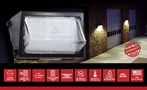 BETTER DESIGN - DLC came back at 119.7 Lumens to watts! Even better than expected! New Phillips Luxeon SMD 3030 LED modules 120 Lumens per watt - Save even more by using a lower watt unit. Compare the lumens against others. Premium grade components make this an industrial grade LED Wall Pack Light