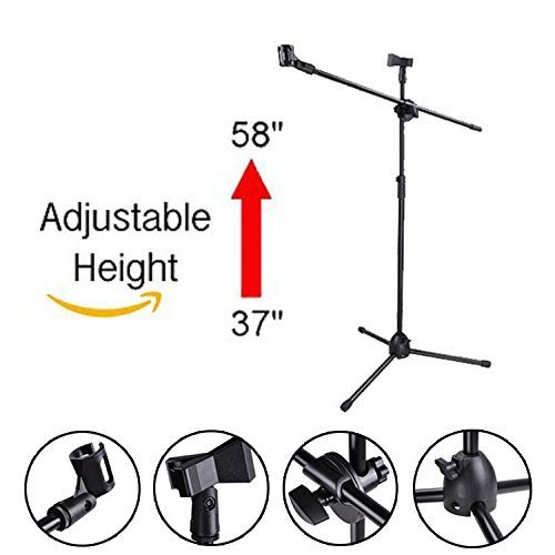 -. Brand : KOVAL INC. -. EAN : 0637509973131 -. Feature : Height Adjustable: Convenient adjustable microphone stand height from 37"-58". Easy to adjust with quick realeasing clamp. / Adjustable Legs: Take your microphone stand anywhere regardless of an uneven surface. With three adjustable legs, makes the stand completely flexible and firmly stand anywhere. / Diverse Occasions: A great tool to use at conference room, church, or any other public place. Great for Karaoke or Sing along parties / Convenient: Lightweight design for easy carrying. Microphone Stand is designed to be sturdy and stable. -. Label : Koval Inc. -. Manufacturer : Koval Inc. -. PackageQuantity : 1 -. ProductGroup : Musical Instruments -. ProductTypeName : SOUND_AND_RECORDING_EQUIPMENT -. Publisher : Koval Inc. -. Studio : Koval Inc. -. Title : Koval Inc. Adjustable Stage Microphone Tripod Boom Stand with 2 Clips -. UPC : 637509973131
