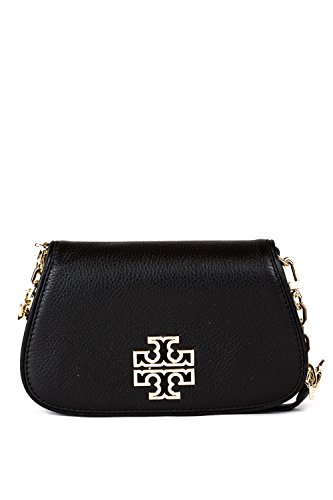-. Binding : Apparel -. Brand : Tory Burch -. Color : Black -. Department : womens -. EAN : 0888736703071 -. Feature : Black leather bag with Golden hardware highlights the logo cutout on a pebbled-leather clutch furnished with an optional chain-woven crossbody strap for day-to-night versatility. Magnetic snap-flap closure. Optional crossbody strap. Interior zip pocket. Logo-jacquard lining. Leather. BY Tory Burch; imported. / 8"W x 5"H x 2"D. (Interior capacity: small.) 22" - 24" crossbody strap drop. -. Model : TB 31159052-001 -. ProductGroup : Apparel -. ProductTypeName : ACCESSORY -. Title : Tory Burch Mini Britten Leather Crossbody Bag Black Handbag New -. UPC : 888736703071 Tory Burch Mini Britten Leather Crossbody Bag Black Handbag New