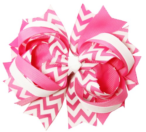 (Dress Up Dreams Boutique)/Accessories/Hair Accessories/DIRECT FROM USA/Pink White Chevron Boutique Hair Bow Clip - 5"