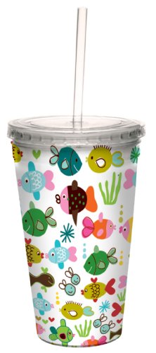 Tree-Free Greetings cc33531 Fun Little Fishies by Carolyn Gavin Artful Traveler Double-Walled Cool Cup with Reusable Straw, 16-Ounce, Multicolored