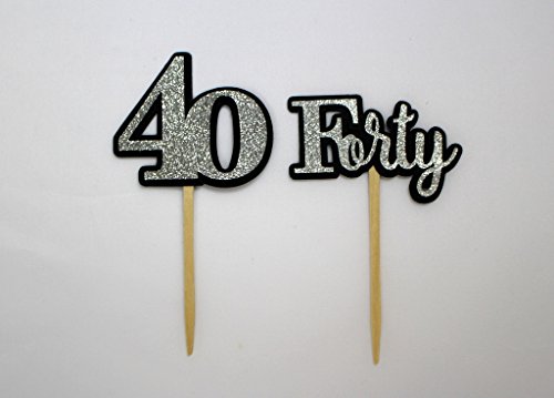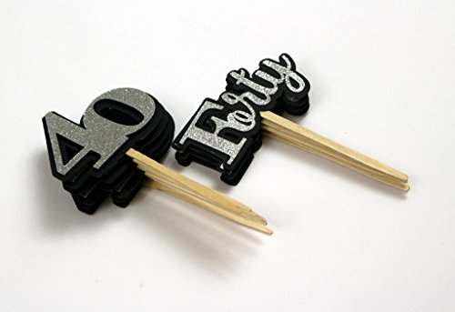 All About Details Black & Silver Forty Cupcake Toppers, Set of 12