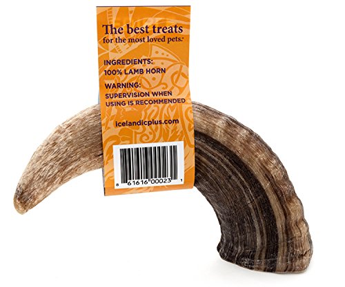 -. Feature : 100% PURE ICELANDIC+ LAMB HORN: Our Icelandic+ Lamb Horn Dog treats and chew are fully edible long-lasting & nutrient-rich. They also help to reduce tartar & plaque build-up for healthier gums and teeth / MADE OF KERATIN, NOT A BONE! SAFE FOR PETS AND 100% EDIBLE: These edible treats offer hours of chewing enjoyment for your pet. One Large Size Horn - NET WT: 2.4-4.2 oz. (68-119 g). / PEACE OF MIND: Each horn is cleaned, boiled, and baked within FDA, USDA, EU, and MAST standards and regulations. These dog chews are made with zero additives, fillers, supplements, or preservatives in them / ICELANDIC LAMB: Due to strict agricultural laws, these lambs are never given hormones as growth promoters or fed grain with antibiotics as an additive, making Icelandic lamb one of the cleanest and healthiest meats in the world / DOGS LOVE OUR TREATS: Their owners will love the enjoyment and nutritional benefits their pets experience from eating them. Our Lamb Horn edible treats come in a variety of natural colors and range from 6.5-7.3 inches in length