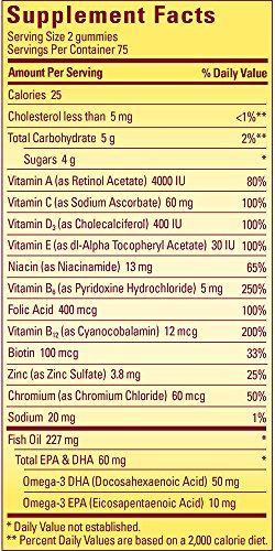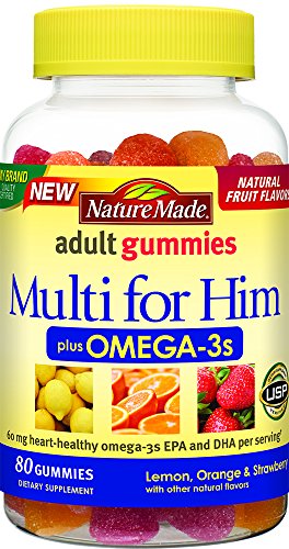 Get 60 mg heart healthy DHA and EPA omega-3s per serving with Nature Made Multi for Her + Omega-3 Gummy. This gummy dietary supplement comes in lemon, orange and strawberry flavors.