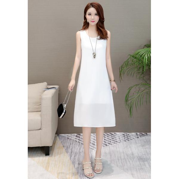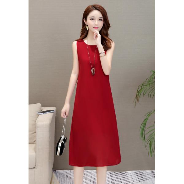 シンプルカラーのマキシ丈ワンピース。