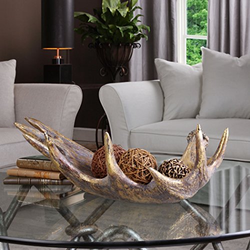 (My Swanky Home)/Kitchen Dining/Tableware/DIRECT FROM USA/Elegant Rustic Faux Antler Centerpiece Bowl | Decorative Lodge Moose Sculpted