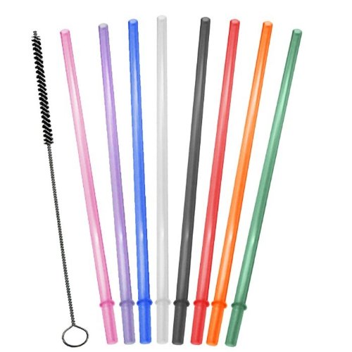 -. Feature : 8pc colored Straws plus 1 Cleaning Brush / Set of 8, red, purple, Clear, green, Pink, Orange, Blue and smoke / 12" Long X 3/8" Wide Cleaning Brush / The size is: 9"x0.29"x0.2", Fits Tumblers of 16oz, 20oz / BPA Free, Dishwasher Safe