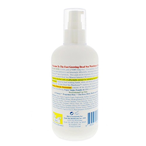 -. Binding : Health and Beauty -. Brand : Dead Sea Warehouse, Inc. -. EAN : 0885245228354 -. Feature : Light and luscious unscented non-greasy all natural formula / Created for the face and great for the body / Perfect for all skin types, including ultra sensitive skin / Sold in over 1,000 health food stores nationwide -. IsAdultProduct : 0 -. Label : Israderm of Israel -. Manufacturer : Israderm of Israel -. Model : 117 -. MPN : 117 -. PackageQuantity : 1 -. PartNumber : 117 -. ProductGroup : Beauty -. ProductTypeName : BEAUTY -. Publisher : Israderm of Israel -. Studio : Israderm of Israel -. Title : Dead Sea Warehouse Amazing Minerals Moisturizer -. UPC : 885478631198