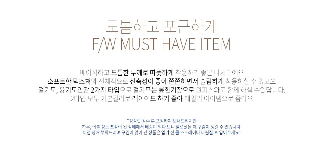.같은 사이즈라도 체형에 따라 핏감이 조금씩 다를 수 있습니다.