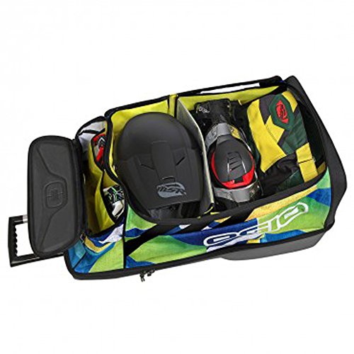 EVA molded goggle / personal items pocket 2 fabric slip pockets for gloves/ tear aways Large main volume 2 Internal mesh organization pockets Internal Top lid zippered mesh pocket Large wet/dry compartment to separate dirty or clean gear/clothes Zip away divider allows use of entire volume or wet/dry compartment ABS molded tub withstands abuse and keeps gear safe from the elements Reinforced replaceable wheel set Easy Clean Eco friendly PVC liner 2 stage trolley handle Helmet divider / Changing mat Heavy duty 900D fabric with Eco Friendly PVC backing.