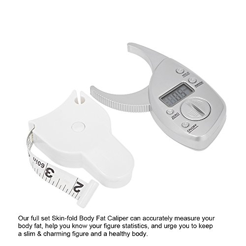 Studio : Anself Publisher : Anself Binding : Misc. Product Description Description: Our full set Skin-fold Body Fat Caliper can accurately measure your body fat, help you know your figure statistics, and urge you to keep a slim charming figure and a healthy body. So why not bring it home and have a try now? ? Features: This Body Fat Caliper Set includes 1 digital body fat monitor and 1 60in skinfold measure tape. Digital body fat caliper with LCD display for easy and fast reading, provides you with digital accuracy.? Accurate measurement. Measures your body fat by gauging your skin-fold thickness, not based on your weight or height. Made of high quality ABS material, eco-friendly and durable for a long time use. Stylish and lightweight, great health care tool to measure your body fat thickness. ? Specifications: Tape Measurement Range: 0 to 152mm Material: ABS; Metal Quantity: 2Pcs Color: White / Silver? Package Size: 17 * 11.5 * 4.5cm / 6.7 * 4.5 * 1.8in Package Weight: 109.7g / 3.9oz ? Package List: 1 * Digital Body Fat Caliper 1 * Measure Tape 0