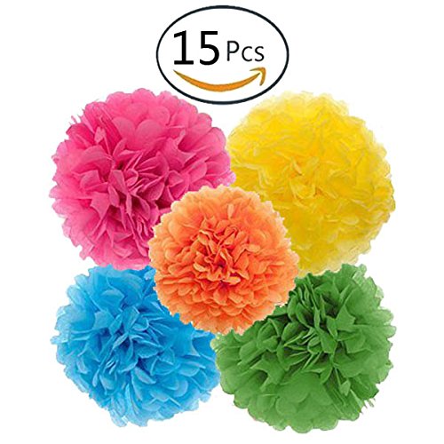 Studio : Party Decoration Publisher : Party Decoration Binding : Office Product Product Description Main Features: - 15pcs paper flowers poms mixed 3 sizes (14" , 12", 10") and 5 colors . - Hand made using premium paper. - Each pom pom comes with white ribbon and instructions . - Pre-cut pieces for easy folding each sheet and fluff into shape to create beautiful and realistic paper flower pom-poms. - Lightweight and easy to hang them from the ceiling, above a table, under the verandah, or from branches in trees. - Perfect for any occasion: Birthday, Wedding, Christening Baby shower, Kitchen tea, Nursery decorations or any other celebration. -Very pretty and the colors really go well and compliment each other nicely.