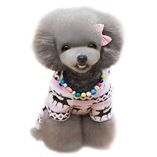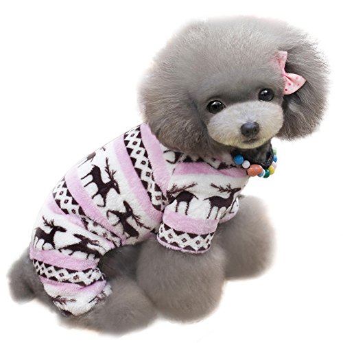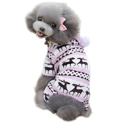 (LETSQK)/Pet Supplies/Apparel Accessories/DIRECT FROM USA/LETSQK Holiday Festive Christmas Snowflake Reindeer Cats Dogs Puppy Pet Hoodie Coat Jumpsuit Pink L