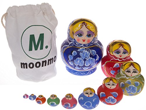 -. Title : Moonmo 10pcs Beautiful Colorful Handmade Wooden Russia Nesting Dolls Gift Russian Nesting Wishing Dolls Matryoshka Traditional