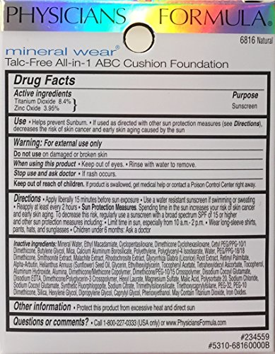 Physicians Formula Mineral Wear Talc-Free All-in-1 ABC Cushion SPF 50 Foundation, Natural, 0.46 Ounce