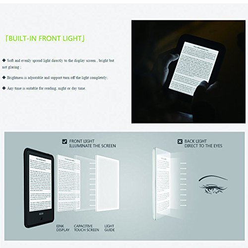 -. Feature : 300 DPI HD E-INK Screen with Full-Screen Touch Function / Multi Format Support, Such As PDF, DOC, CHM, PNG, JPG, TXT, MP3 / Built in front light / New A2 quick refresh mode, increase refresh mode by 200% / Support Up to 32GB Micro SD card