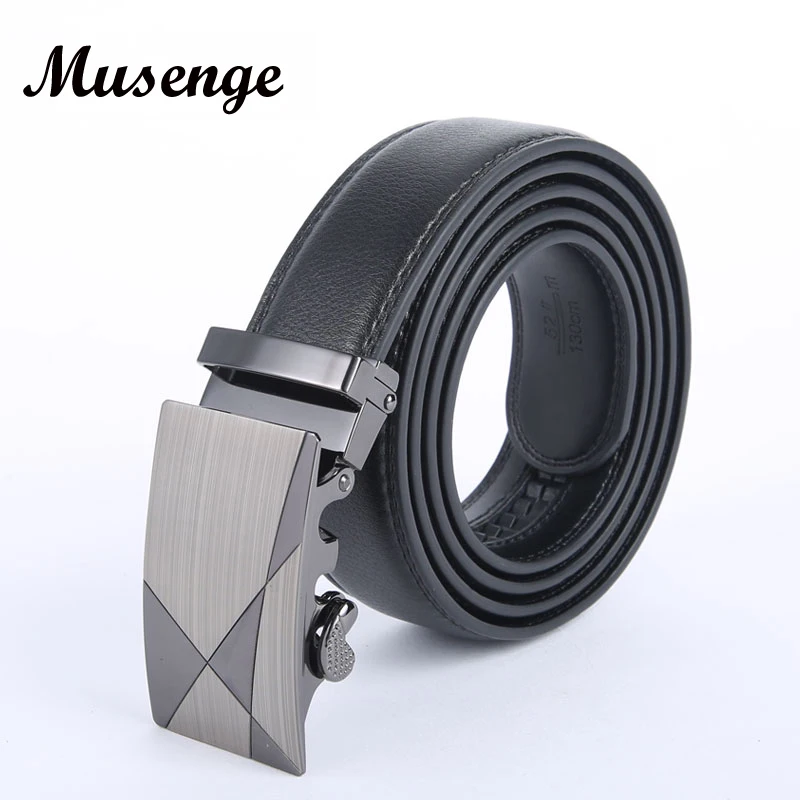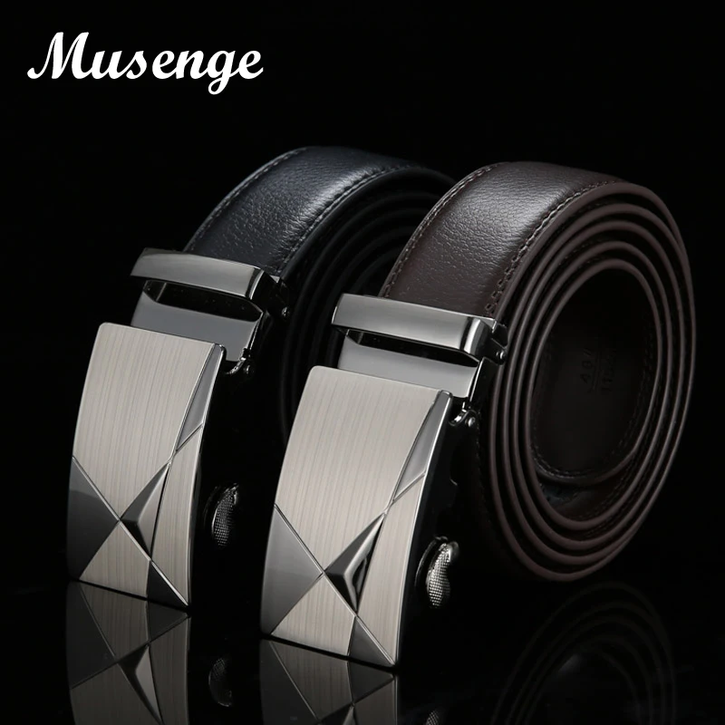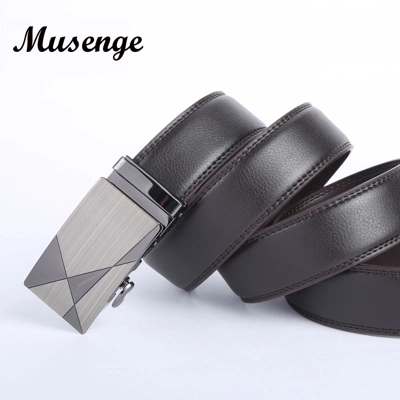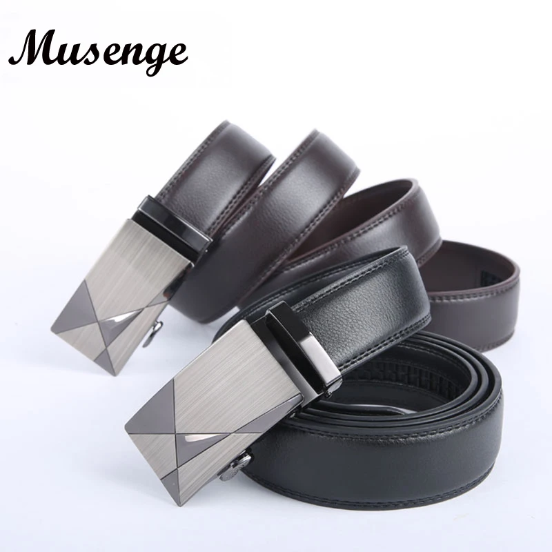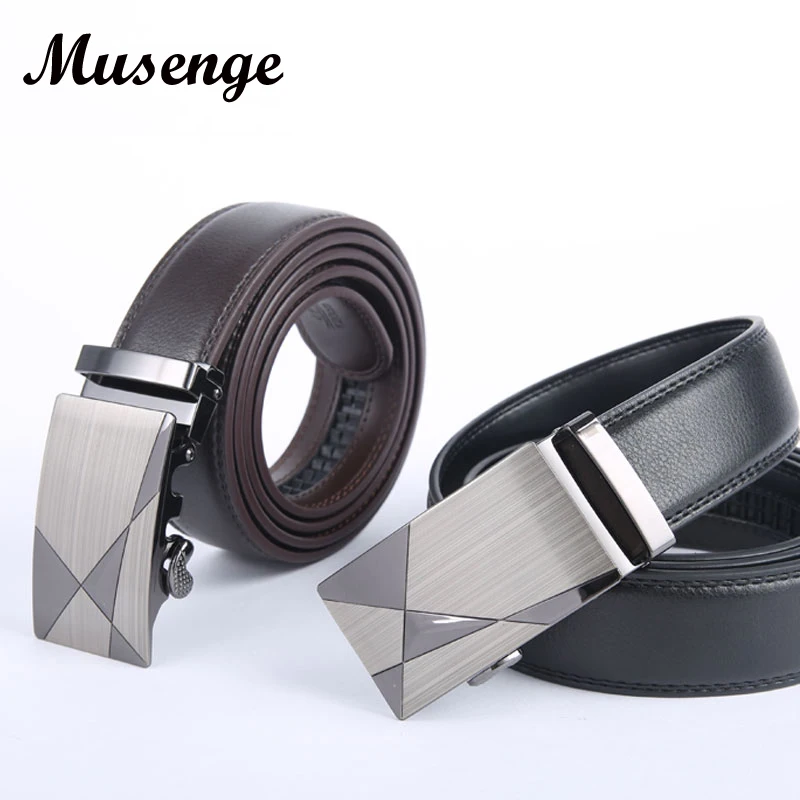 Gender: Leather Belt Men Ceinture Length: 110cm, 115cm, 120 cm, 125 cm, 130 cm Belt Color: Black Brown Buckle Color: Light Gray Decoration: Geometic Buckle Buckle Type: Automatic Buckle Riem Popular Element: Luxury Metal Buckle